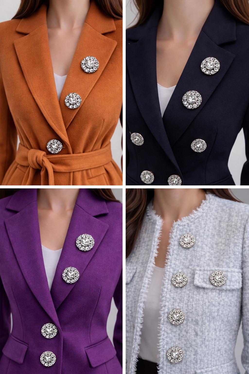 Ideali pentru sacouri, paltoane, rochii elegante, costume de ocazie, ținute de scenă sau aplicații decorative textile. Pot fi utilizați atât funcțional, cât și ca elemente decorative premium.
